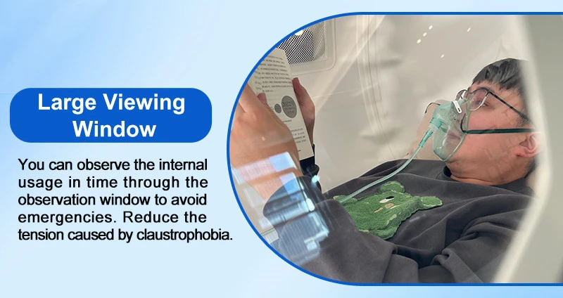 | Air & O₂ Automatic Control System | Pressured the chamber by air at 120L/min within 1 min; Booster mixed 93% ± 3% at 5L/min and air 60L/min automatically after 1 min. Also can adjust according to your requirement. |