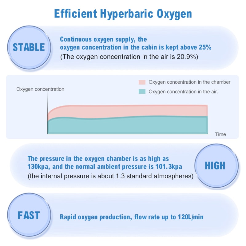 Our hyperbaric oxygen chambers are all FDA-approved. An emergency button to release pressure and an automatic air pressure control system will make you enjoy treatment safely.
