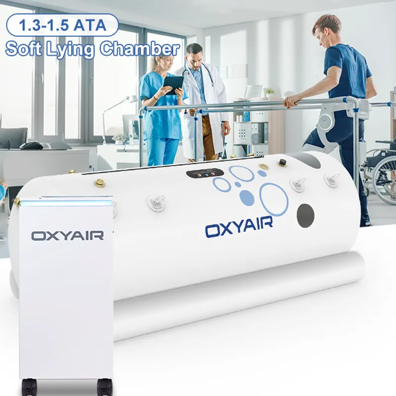 The OXYAIR soft-shell hyperbaric chamber includes a durable chamber and a two-in-one oxygen concentrator with a compressor. It provides up to 1.5 ATA (7.2 PSI) pressure and delivers 93% pure oxygen through a mask for better recovery. Made from tough 5 Class TPU material and available in three sizes, it fits different body types. Large windows help users feel at ease, and full customization is available.